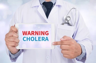Cholera is an acute diarrhoeal disease, which is caused by Vibrio cholerae. It's cases are characterized by Sudden onset as profusely, effortless, watery diarrhoea followed by vomiting/rapid dehydration muscular cramps and urine suppression.